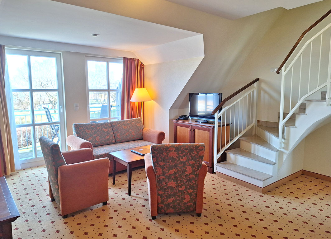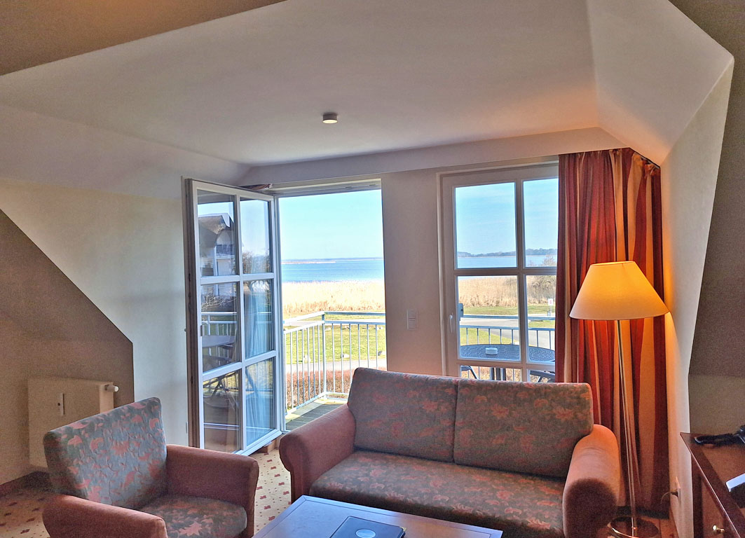 Unsere Ferienwohnung bietet Ihnen eine Wohnfläche von 58 m². Sie ist über zwei Etagen aufgeteilt. Ihren morgendlichen Kaffee zum Frühstück oder auch das Glas Wein zum Abend genießen Sie auf Ihrem eigenen Balkon und das mit einem unglaublich schönen Blick über den Balmer See. Der Wohn- und Küchenbereich mit gemütlicher Sitzecke, Kochzeile und Esstisch grenzt unmittelbar an.